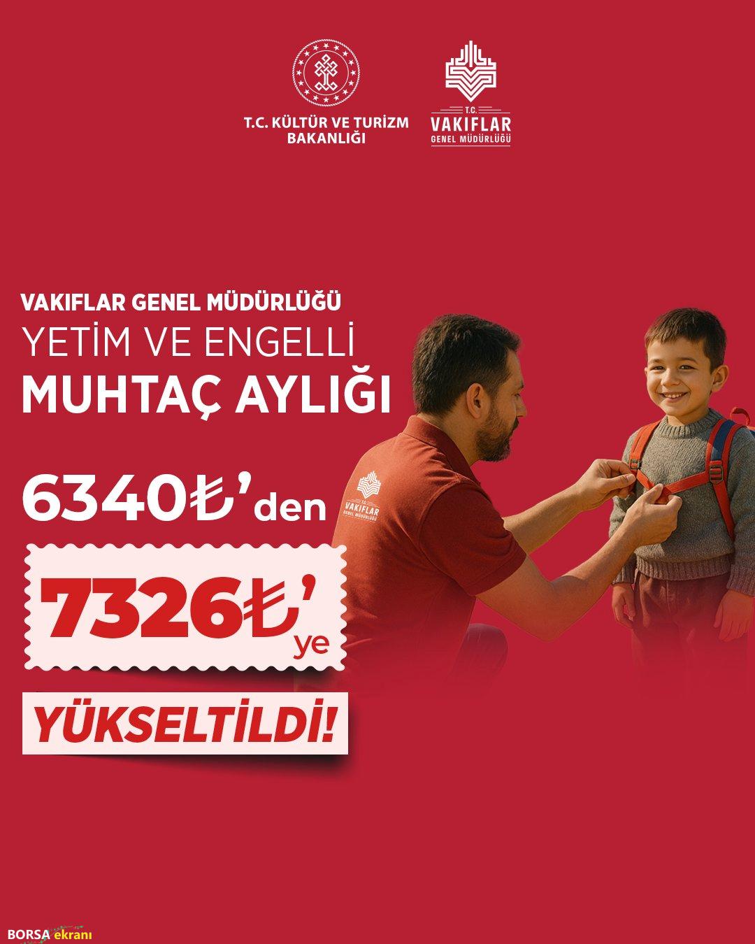 VGM’den yapılan açıklamaya göre, hayırseverlerin vakfiyelerinde yer alan şartlar doğrultusunda ihtiyaç sahiplerine sağlanan yetim ve engelli muhtaç aylığı yüzde 15,5 oranında artırıldı. Buna göre, aylık ödeme miktarı 6 bin 340 liradan 7 bin 326 liraya yükseltildi. Açıklamada, bu ödemelerin tamamen hayırseverlerin tarihi vakfiyelerinde belirtilen koşullara uygun şekilde yapıldığına dikkat çekildi. VGM, sosyal yardımların sürekliliği açısından vakıf kültürünün yaşatılmasının önemine vurgu yaparken, desteklerin ihtiyaç sahiplerine adil şekilde ulaştırılması için titiz bir değerlendirme sürecinin uygulandığını ifade etti.