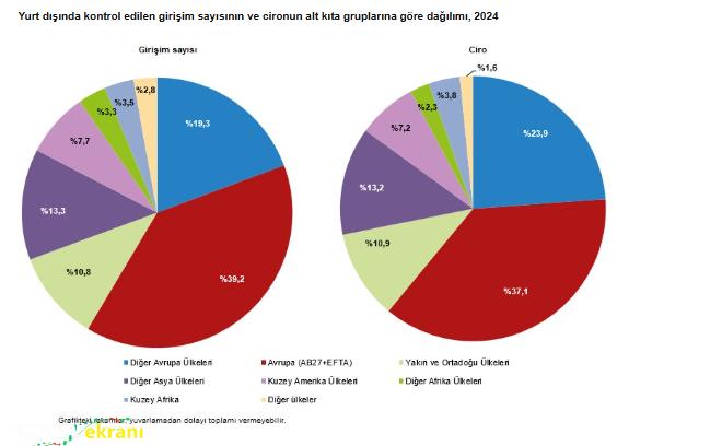 Avrupa (AB27+EFTA) ülkeleri 2024 yılında girişim sayısında yüzde 39,2; ciroda %37,1 pay ile birinci sırada yer aldı. Diğer Avrupa ülkeleri ise yüzde 19,3 pay ile girişim sayısında, yüzde 23,9 pay ile ciroda ikinci sırada yer aldı.