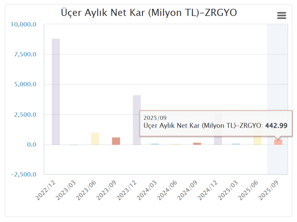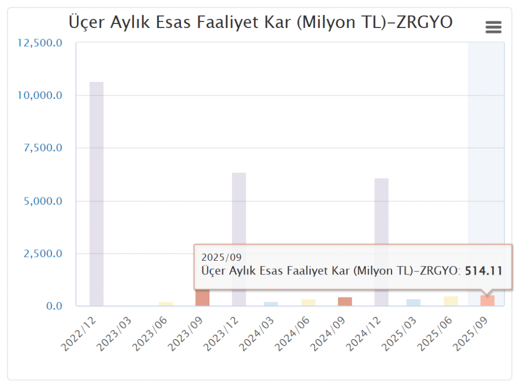 Ziraat Gayrimenkul Yatırım Ortaklığı A.Ş. (ZRGYO) 2025 3. çeyrek bilanço analizi : pozitif